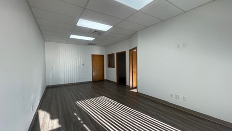 This unit includes a large reception/work area, two private offices, and a restroom. This flex space is approximately ±1969 square feet and is available under a modified gross lease with no CAM expenses. The landlord will be responsible for maintaining the office HVAC.
