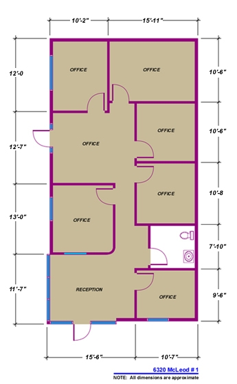 Includes a spacious reception area, 5 offices, conference room, work area and a private restroom. Building fronts on McLeod Dr in the Park 2000 master planned business park. Easy access to Freeways, McCarran Airport, Green Valley and the Strip.